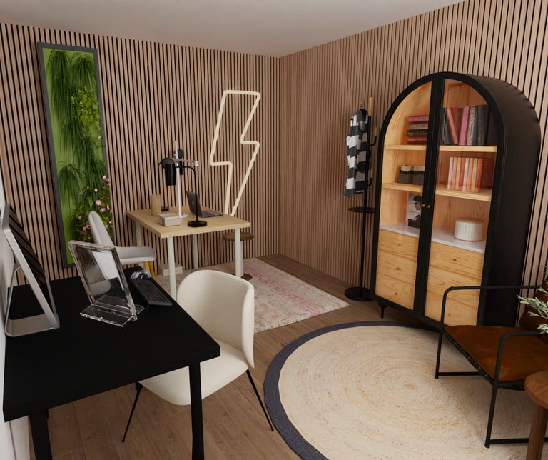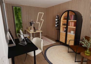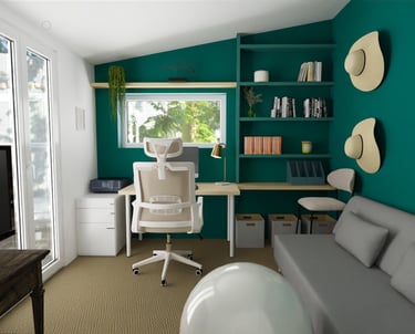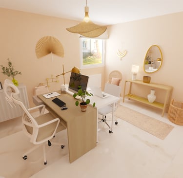 Une modélisation 3D de ton bureau réalisée par une décoratrice d'intérieure diplomée.